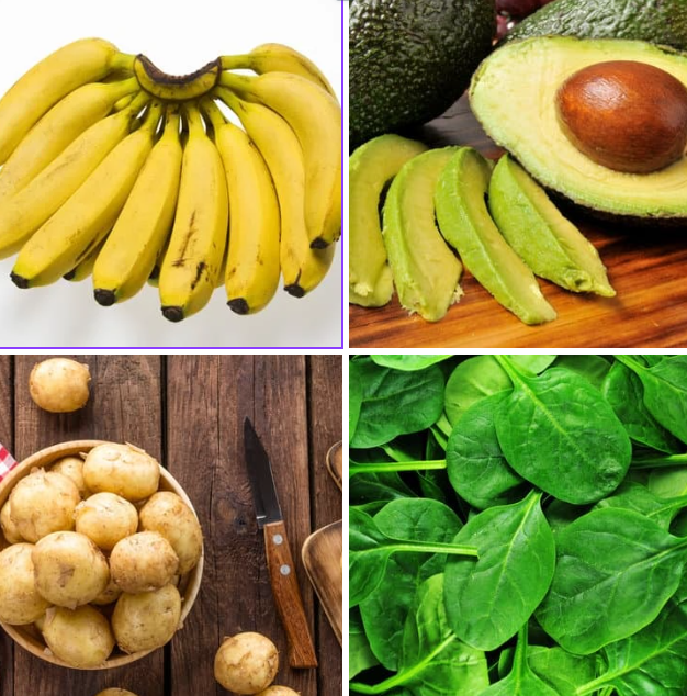 추천 음식: 바나나, 감자, 시금치, 아보카도