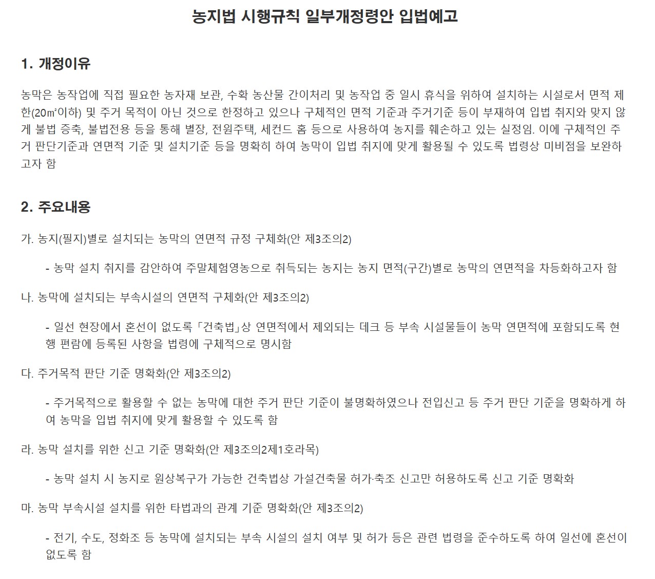 2. 농막 건축 허가 신청: