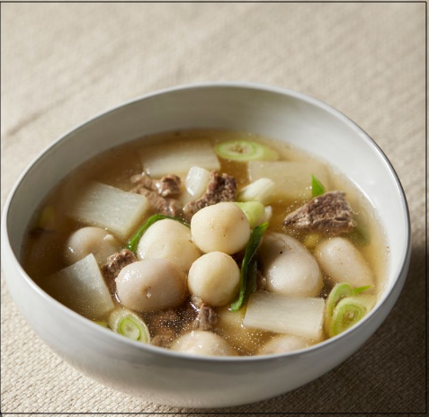 타로 수프 또는 토란국은 타로 뿌리와 쇠고기 국물로 만든 위안이 되는 요리입니다. 타로 뿌리는 소화를 돕는 등 건강상의 이점이 있다고 합니다. 추석에 토란국을 대접하는 것은 다가오는 한 해의 건강과 활력에 대한 희망을 상징합니다.